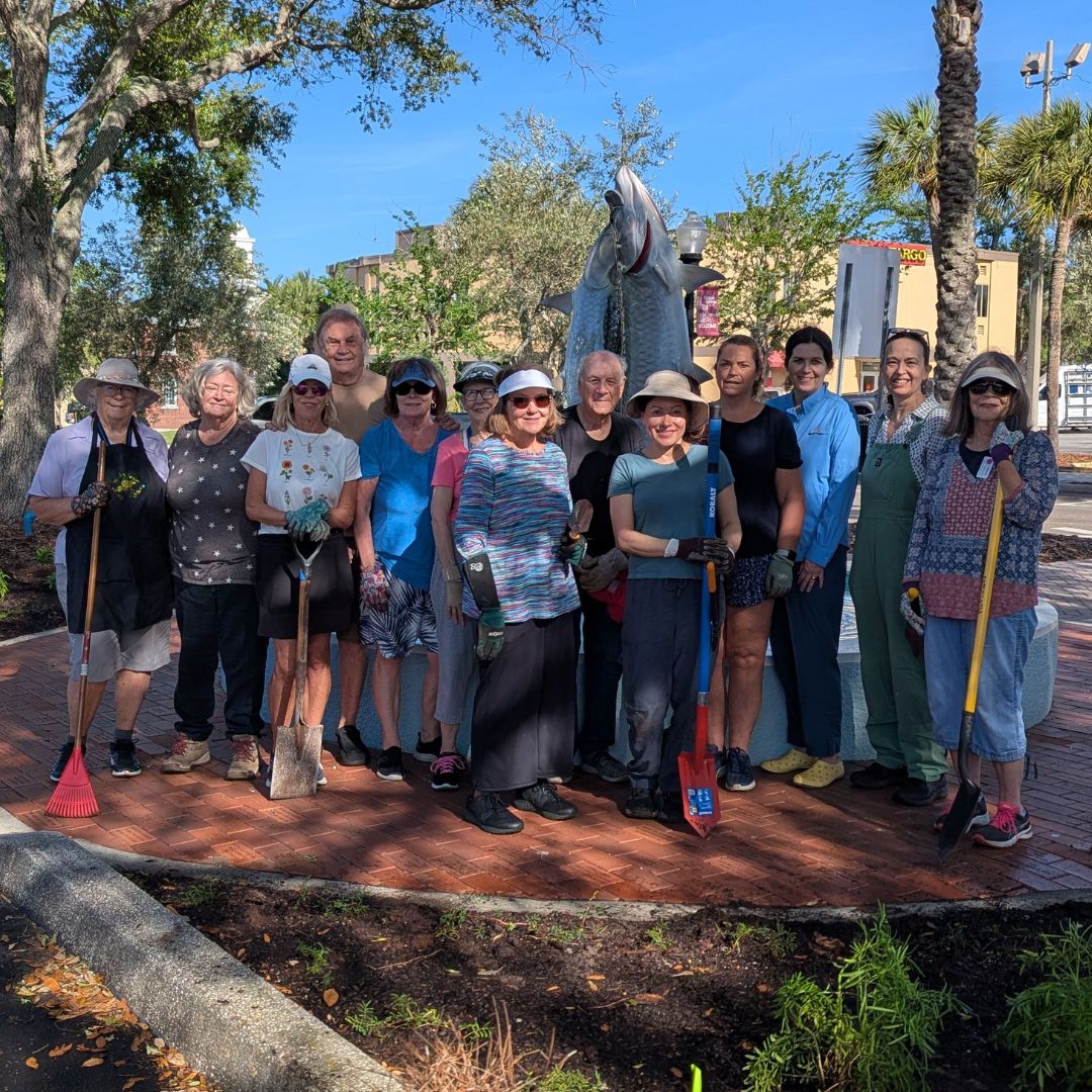 Many Hands Make Light Work. We worked with the Tarpon Springs Parks Department to prepare the site and to ensure adequate irrigation for establishing and maintaining the native plants. Wilcox Nursery and Landscape in Largo delivered the native plants. The Tarpon Springs Garden Club came out for planting day! We appreciate all their help in digging, planting the native seedlings, watering, and spreading the pine needle mulch.