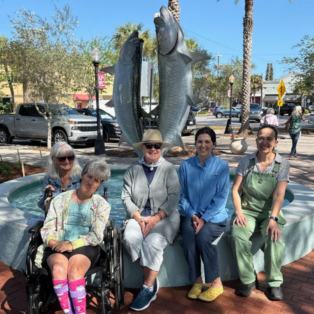 Come watch our garden grow! Our garden is located on either side of the Tarpon Fountain in front of the entrance to the library.